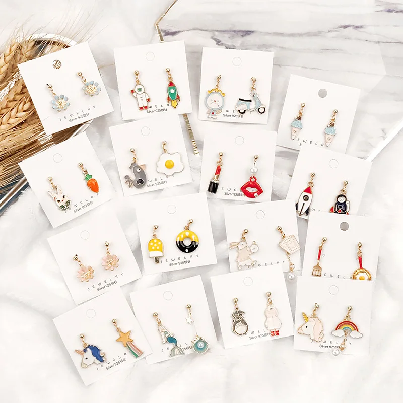 Милые Мультяшные Сережки для женщин Асимметричные Кролик кошка часы с птицами пончик Радуга Единорог мороженое висячие серьги Ювелирные изделия Подарки