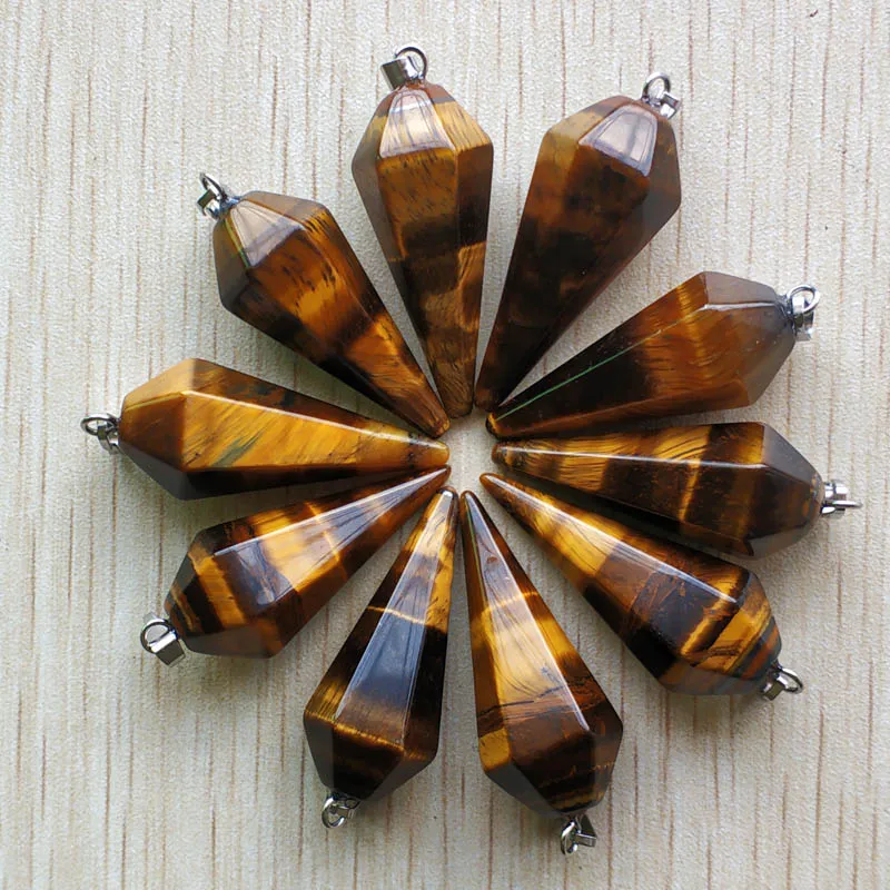 Оптовая продажа; 12 шт./лот модные натуральный камень тигровый глаз маятник пирамиды Кулоны из нержавеющей стали 16x34 мм для "сделай сам" для из...