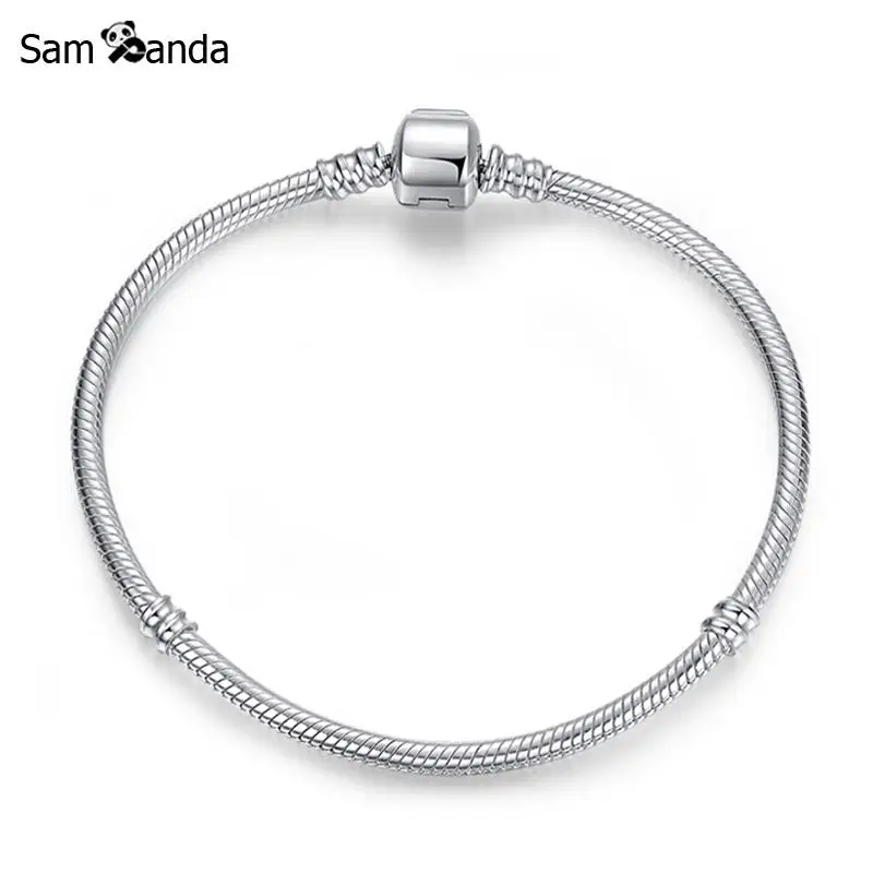 Оригинальный 925 пробы 100% серебряный браслет из бисера Шарм Сердце Снежинка Роза змея цепи базовые браслеты Пан для женщин DIY ювелирных издел...