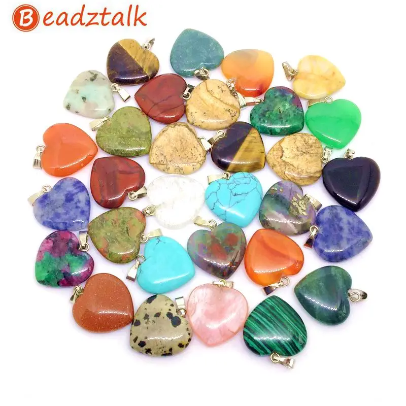 Beadztalk цветными камнями Сердце Шарм Подвески 20 мм для DIY расходных материалов для изготовления ювелирных изделий Лидер продаж Ясперс опал ла...