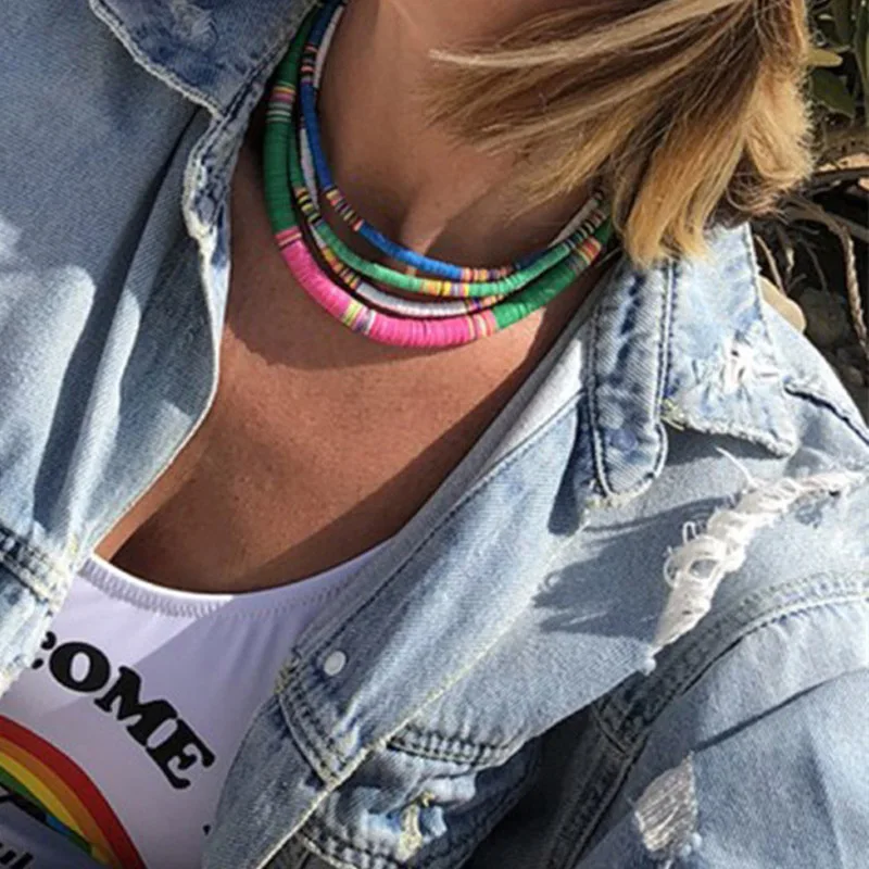 Готический стимпанк ожерелья для женщин ручной работы Радуга Цвет Полимерная цепь глины ожерелье чокер женщин ювелирные изделия партии 2020