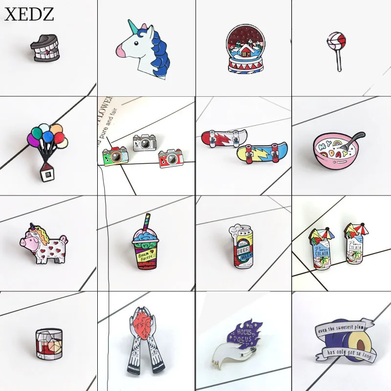 XEDZ новый воздушный шар кофейная чашка любовь банки кока бутылка брошь серия скейтборд камера зубы значок Детская брошка мультфильм ювелирные изделия gi