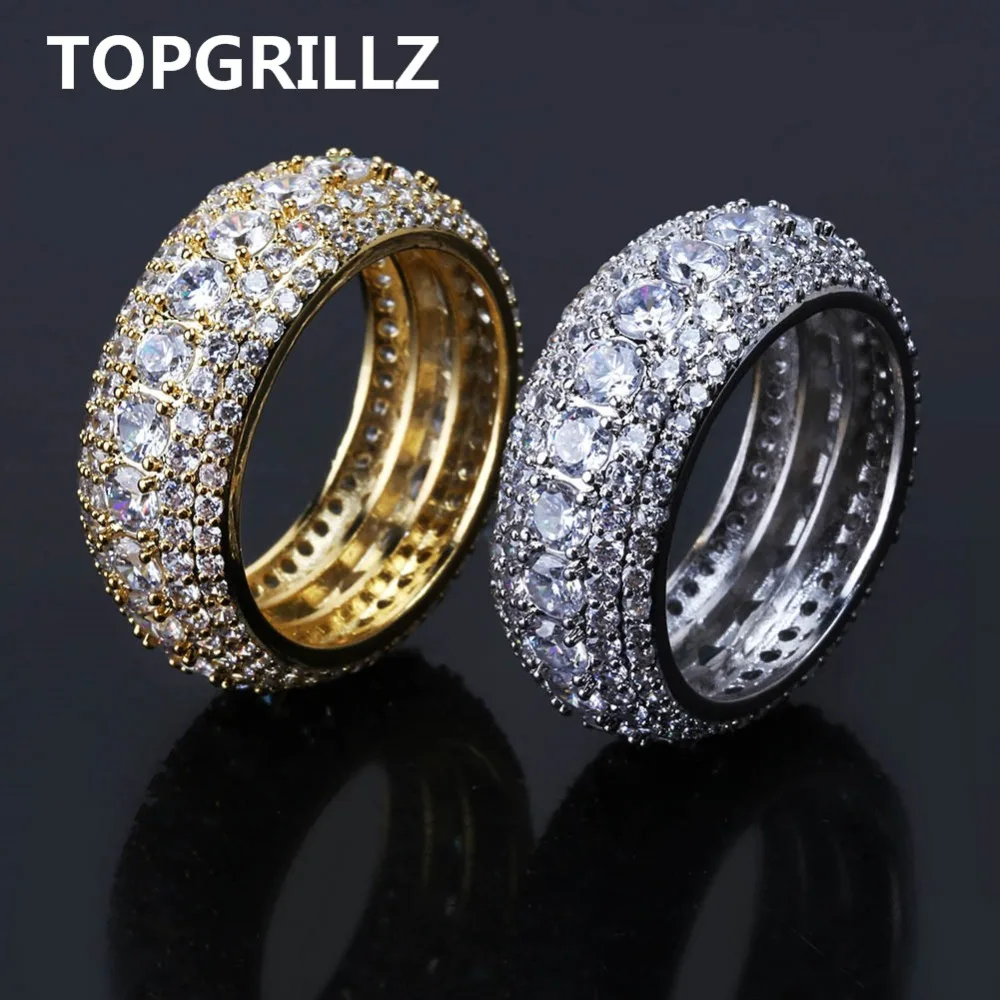 TOPGRILLZ хип хоп для мужчин Iced Out кубический циркон Bling Круглый 10 мм кольцо цвета: золотистый, серебристый цвет CZ Jewelry кольца Подарки