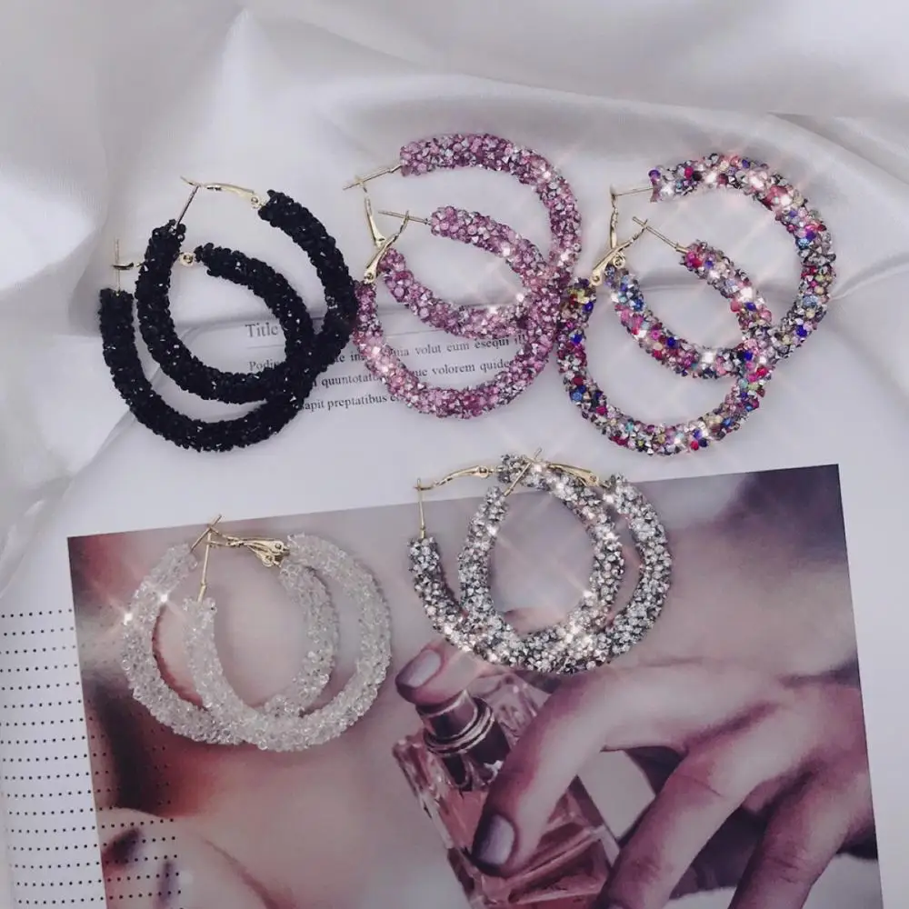 Женские простые блестящие стразы, большие серьги, ювелирные изделия, новый дизайн, модные геометрические круглые очаровательные хрустальн...