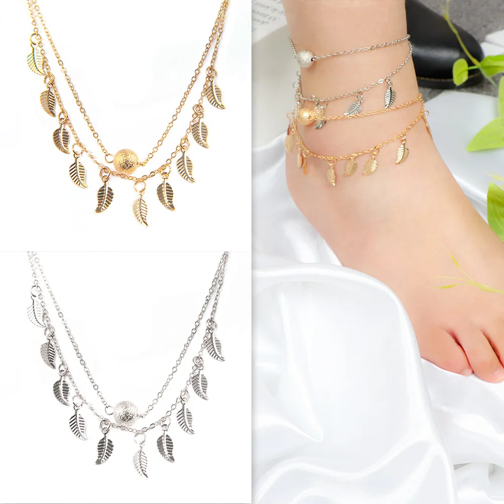 1 шт. двухслойный бисер ножной браслет с подвеской ножной браслет для женщины Шарм в античном стиле серебро Сделай своими руками листья брас...