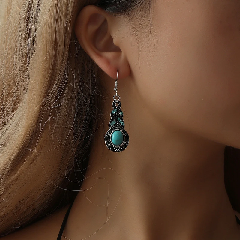 Винтажные висячие серьги для женщин этнические богемные синие Кристальные зеленая бирюза Висячие серьги для женщин