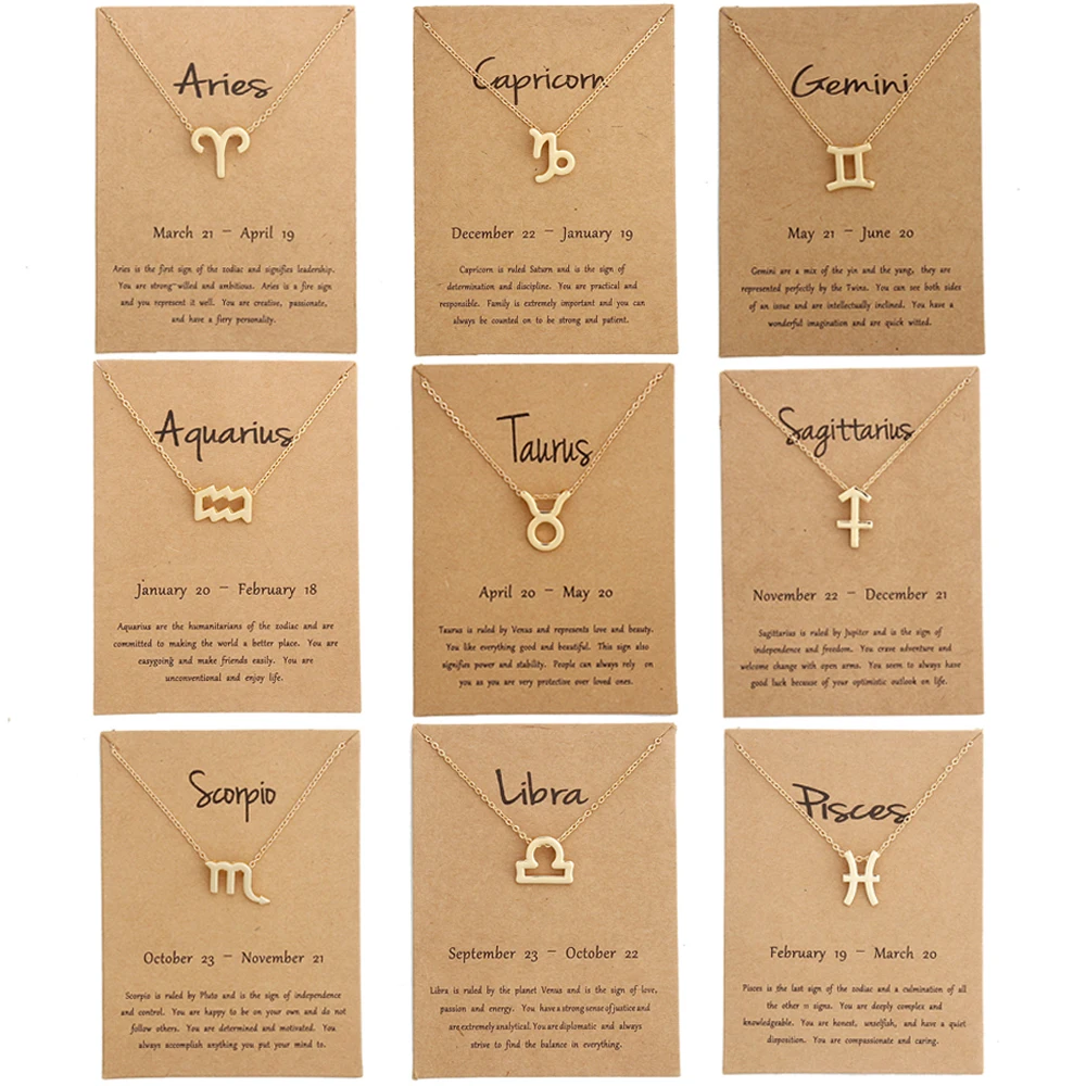 Новая мода 12 Созвездие ожерелья для женщин Овен Козерога Телец ожерелье Золото сообщение карта Подвеска Украшения Подарки