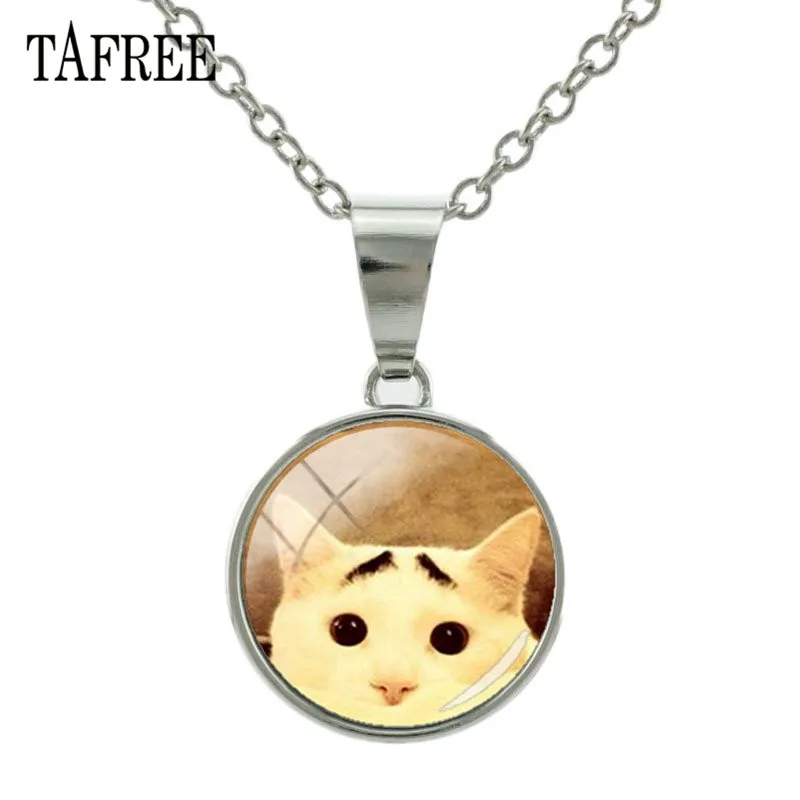 TAFREE милые Подвески для кошек с кнопками 18 мм стеклянный кабошон фото купольное ожерелье кулон DIY ювелирное изделие подарок B252