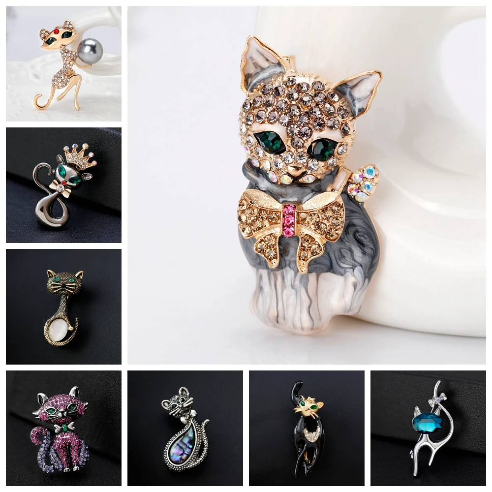 Яркая брошь в виде кошки, вечерние, Металлическая корона, синий кристалл, эмалированная булавка, черная брошь в виде животного для женщин, ювелирное изделие, аксессуары