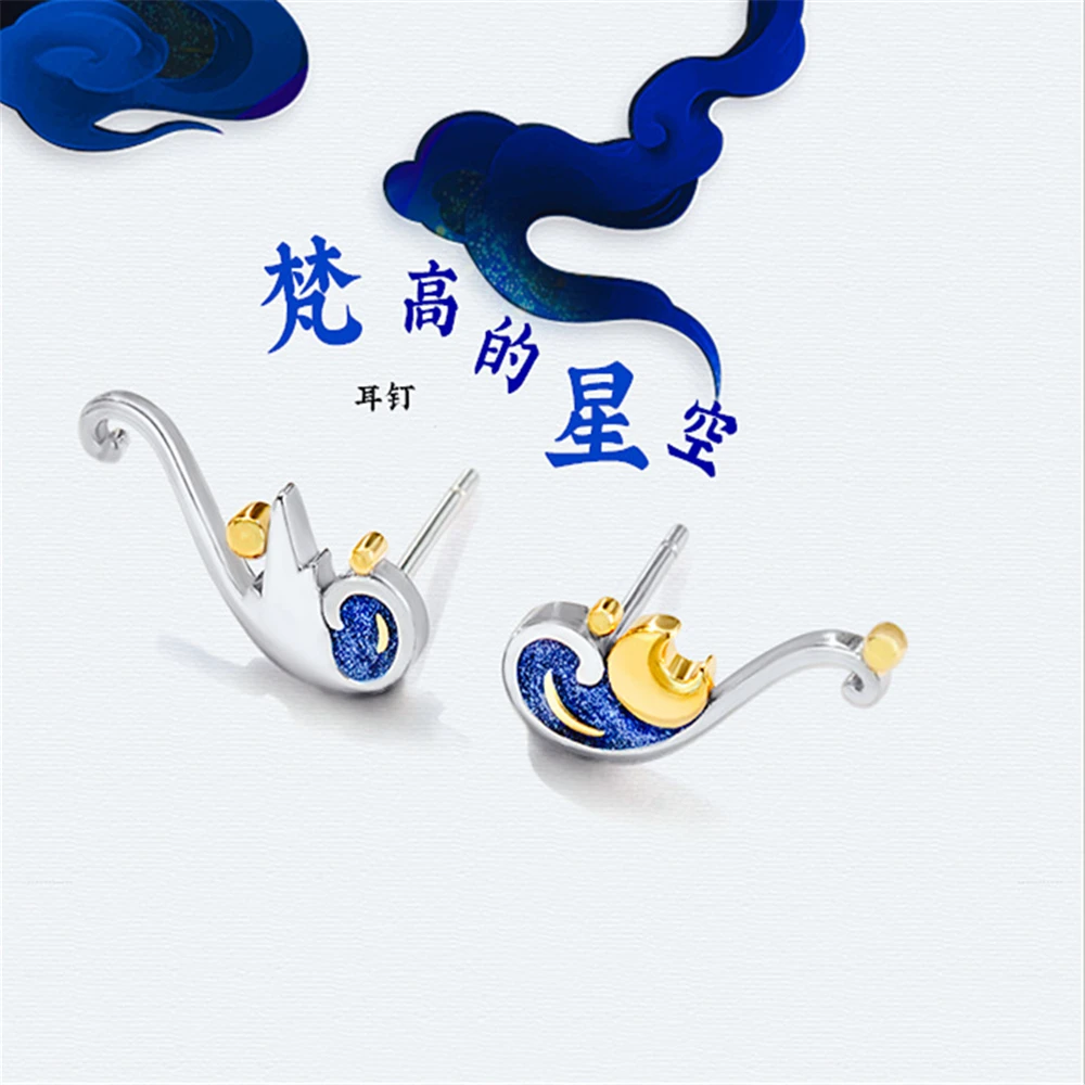 Серьги-пусеты в тибетском стиле, серебристые, Anel, Van Gogh, Starry Night, Cloud, золотые, хит продаж 2020, женские Украшения, Прямая поставка