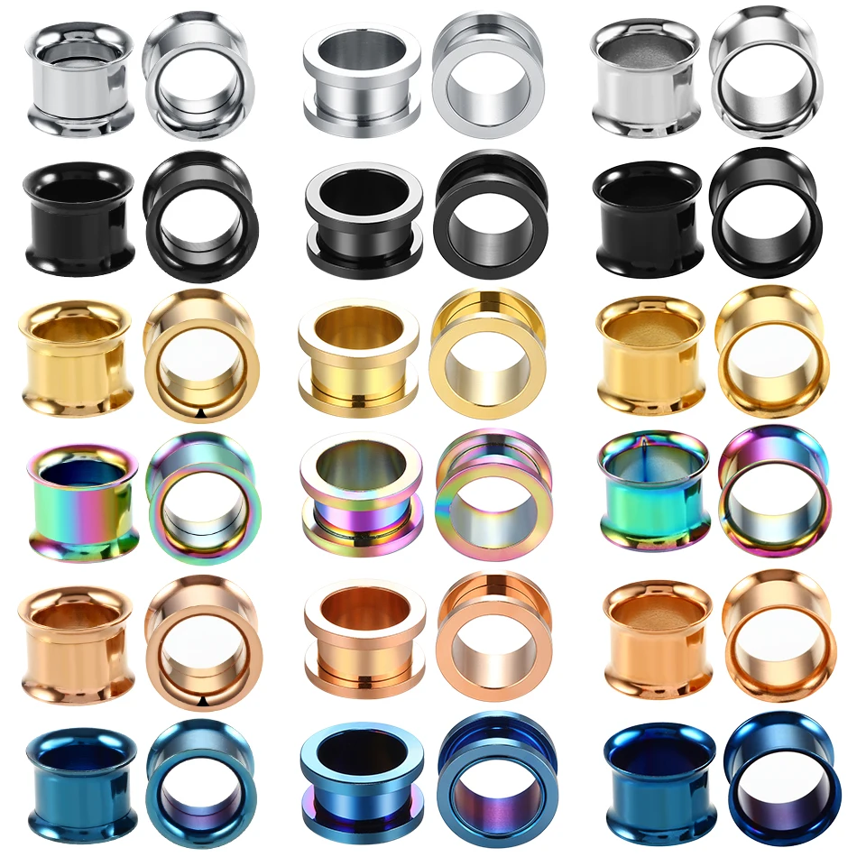 2 шт./лот Стальные Винтовые затычки для ушей туннельная телесная серьга манометры полые пирсинг тоннели расширитель для мочек ушей носилки ювелирные изделия для тела 2 мм-20 мм