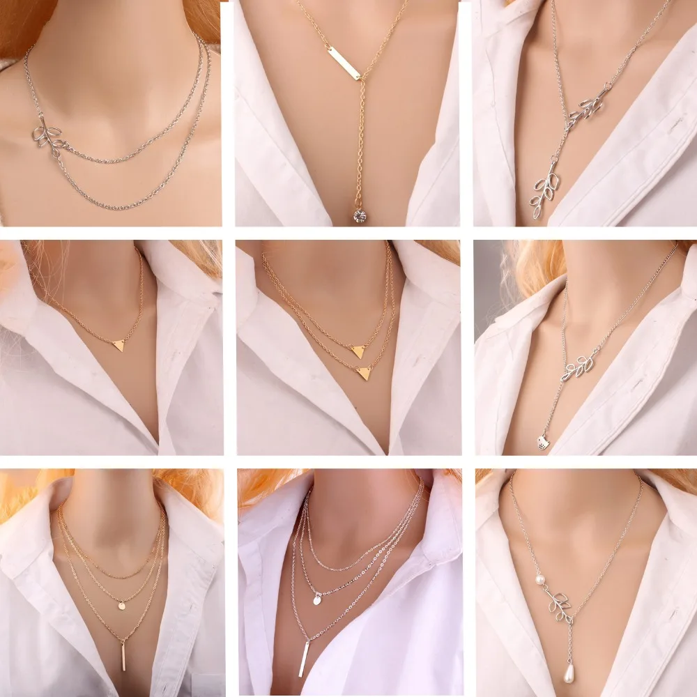 Богемное простое ожерелье из сплава с искусственным жемчугом геометрической формы треугольник крест лист перо кулон ожерелье для женщин ю...
