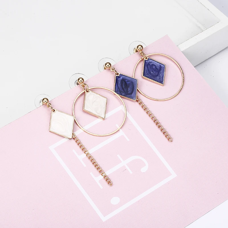 2018 новый хит! Модные ювелирные украшения красивые золотые Цвет Пирсинг горный хрусталь Асимметричная квадратный серьги гвоздики для женщи...