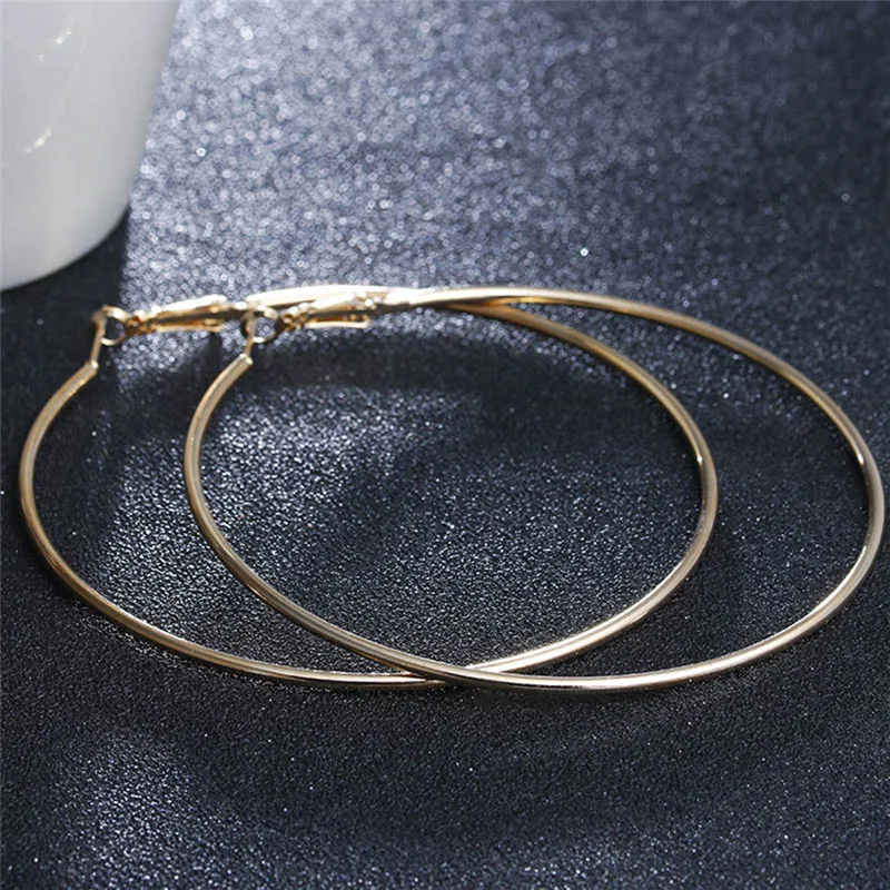 Модные Большие Круглые Гладкие большие серьги-кольца, женские золотые серебряные серьги-кольца из металла 8 см 10 см