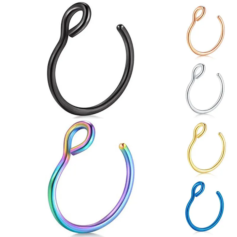 Горячая Распродажа стальных колец для искусственной перегородки Кольца для пирсинга поддельные кольца для носа кольца на клипсе для носа р...