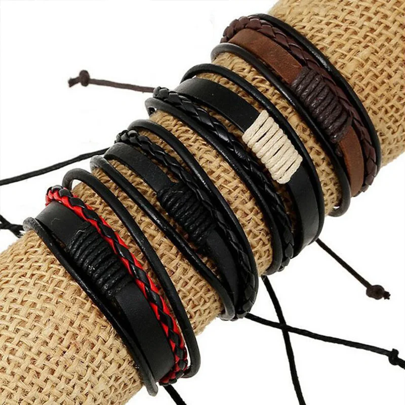 Lnrrabc многоцветный Для мужчин кожаный браслет ткань Многослойные Сёрфинг Напульсники веревки Регулируемый Браслеты с подвесками Модные укр...