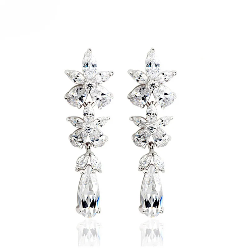 SLBRIDAL Серебряный проложить параметр кубические циркониевые серьги-люстры серьги Свадебные украшения CZ серьги Для женщин девушки мода на ка...