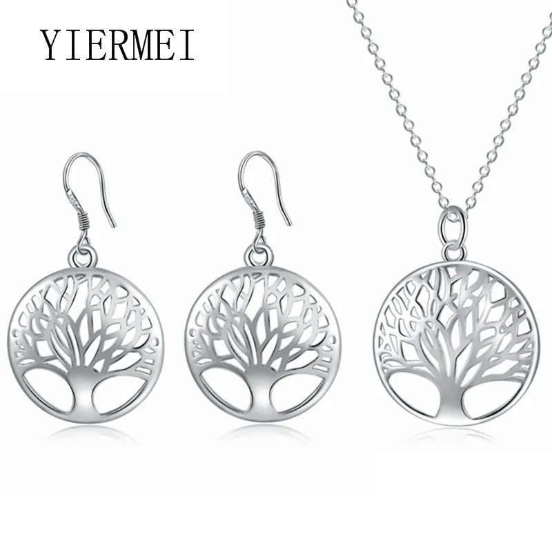 2019 Популярные Древо жизни круглый кулон цепочки и ожерелья серьги набор серебряное дерево жизни Bijoux колье Элегантные женские украшения под...