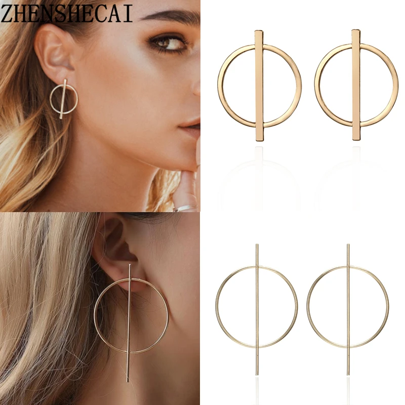 2019 серебряные золотые серьги-гвоздики для женщин, круглые серьги геометрический круг, ювелирные изделия для ушей