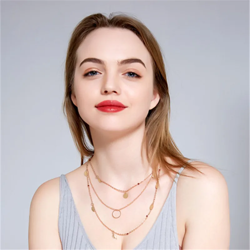 Богемный круг блестки листьев Шарм ожерелья для женщин Мода Многослойные золотые и серебряные Цвет ожерелья ювелирные изделия