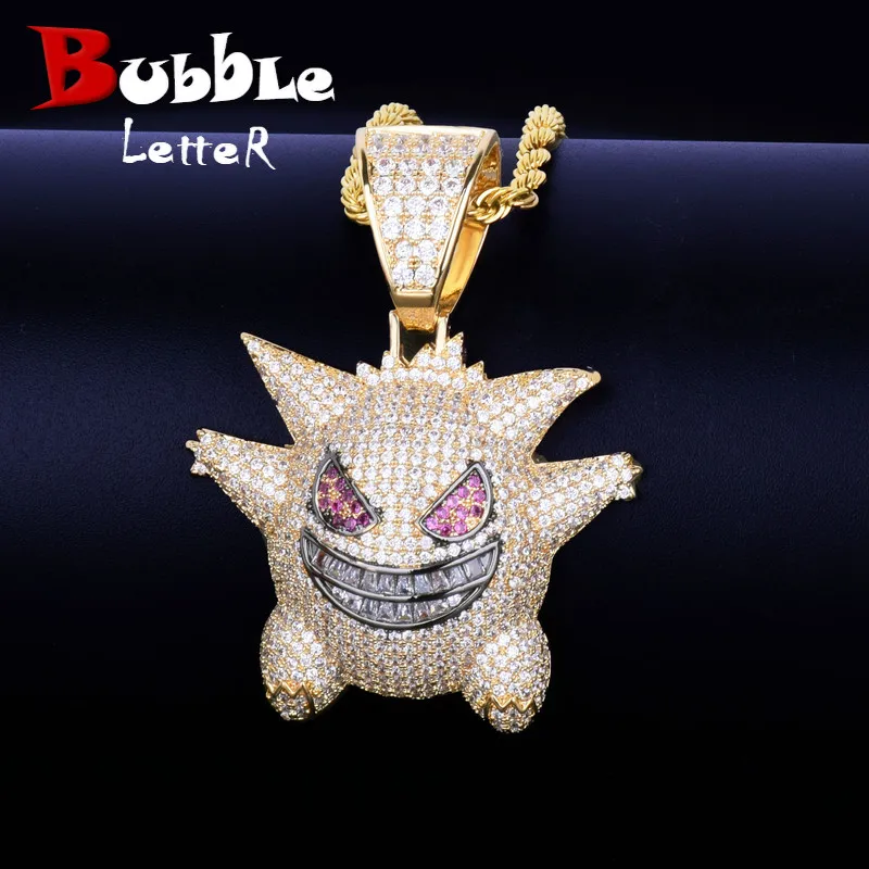 Забавный призрак мультфильм кулон Золото Серебро Шарм с багет Циркон мужская хип хоп рок ожерелье ювелирные изделия