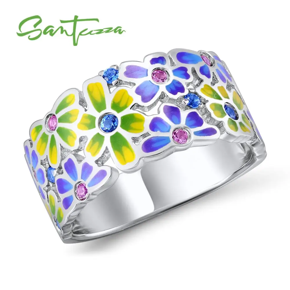 SANTUZZA цветок кольцо для женщин Красочные прозрачность ручной работы кольцо с эмалированным цветком вечерние модные украшения