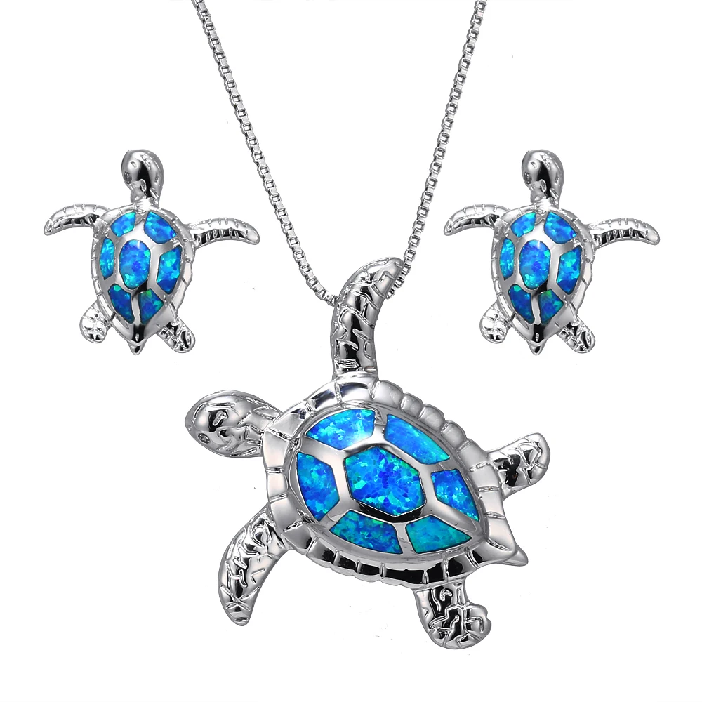 Подарок на день матери большая акция Natural Sea черепаха австралийский опал 925 пробы серебряный кулон Цепочки и ожерелья серьги комплект ювелир...