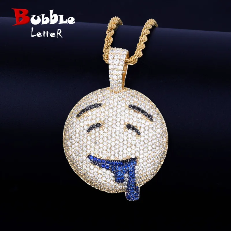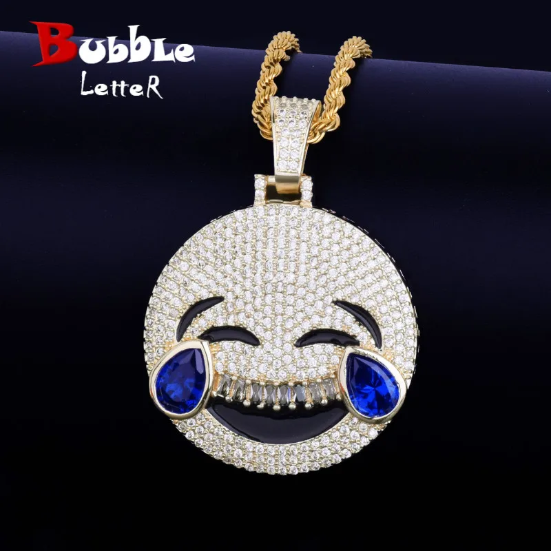 Ожерелье с кулоном в виде смеха и крика, цепочка, золото, серебро, с синим кубическим цирконием, мужские ювелирные изделия в стиле хип-хоп, рок