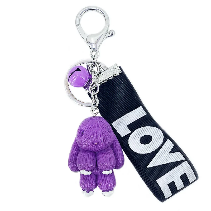 Новый милый резиновые, акриловые животных Медведь, щенок, кролик, цвет ленты с колокольчиком милый темперамент кольцо для ключей сумка с под...