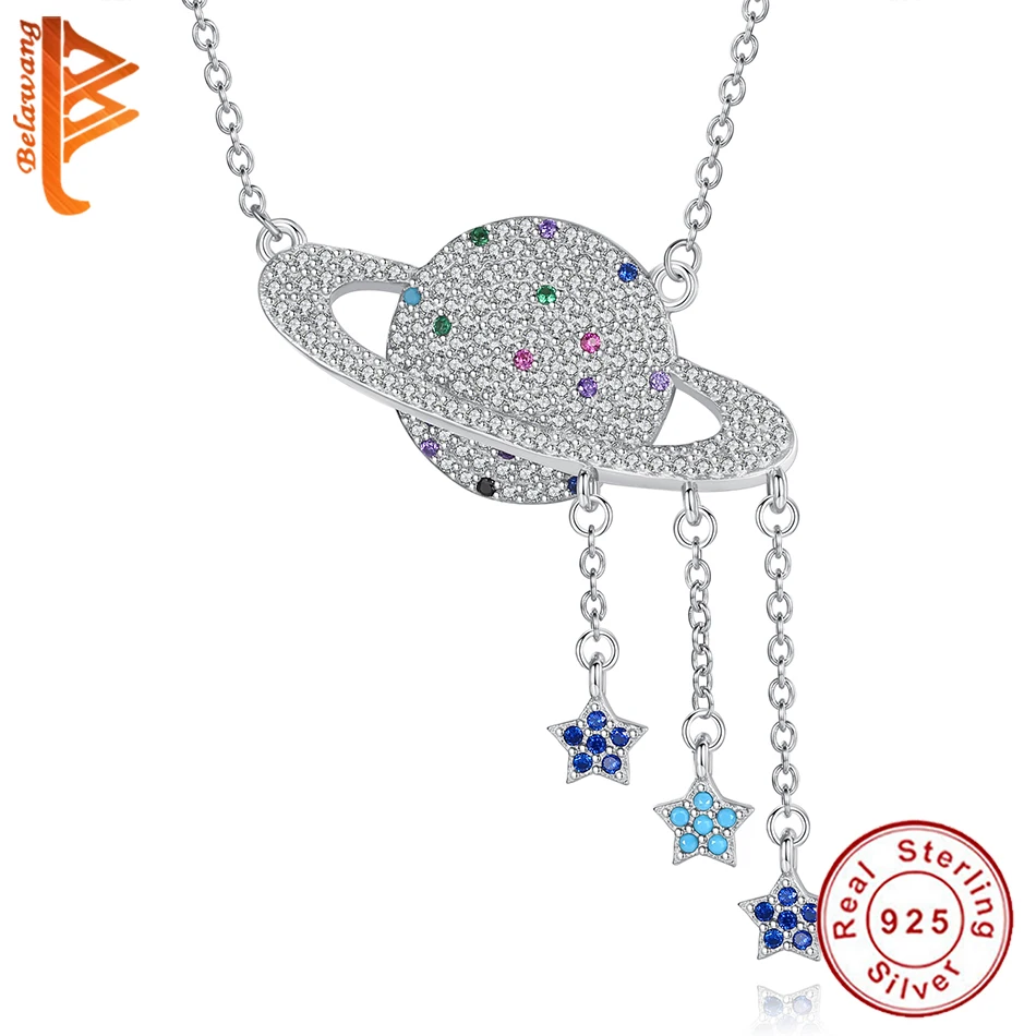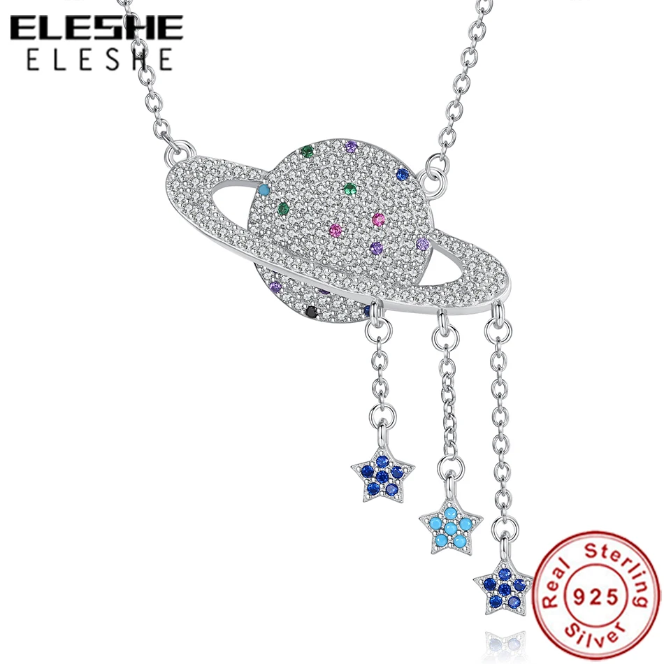 ELESHE 2019 Настоящее серебро 925 проба ожерелье с подвеской галактика, планета кристалл ожерелье для женщин модные ювелирные изделия Подарок на ...