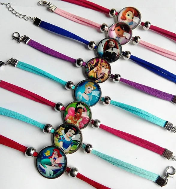 24 шт./лот, Мультяшные браслеты в стиле принцессы Белоснежки, Рапунцель, Тиана, Ариель, Золушка, Мерида, стекло, детские браслеты