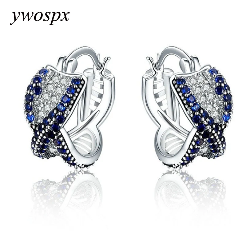YWOSPX Элегантный Кристалл Циркон Brincos Серебро Цвет Серьги Кольца для женщин Свадебные украшения обручение себе крест серьги Y20