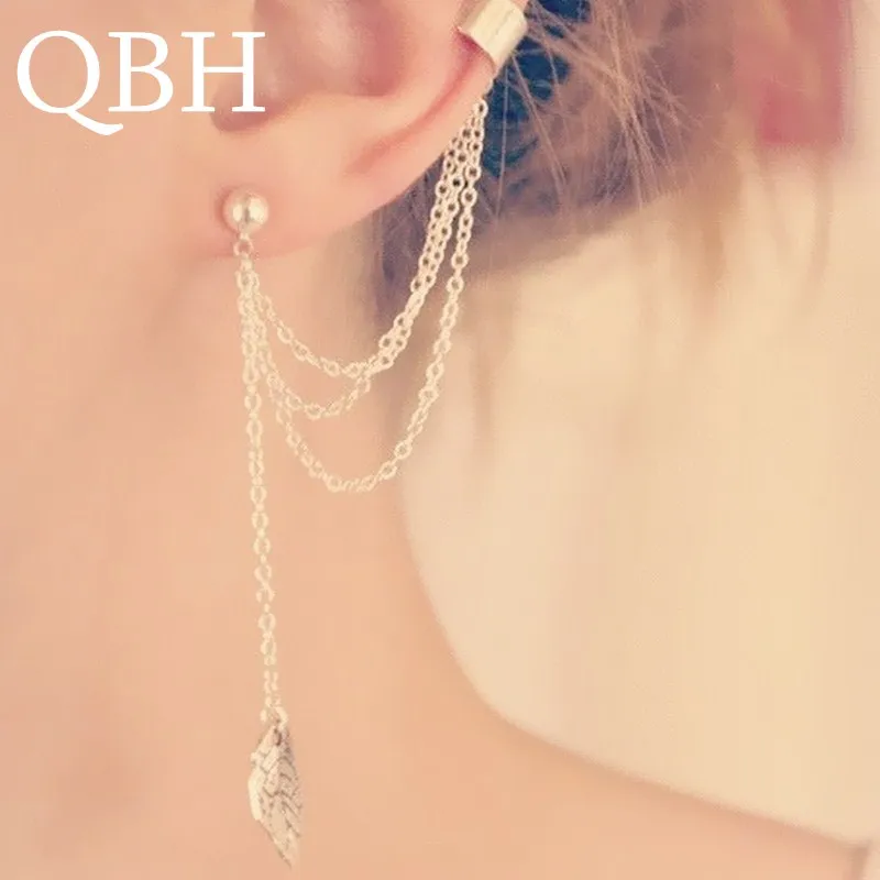 EK667 1 шт. Новый Панк Mujer Brincos девушка лист цепи длинной кисточкой ухо манжеты клипсы для женщин ювелирные изделия Boucles Pendientes Bijoux