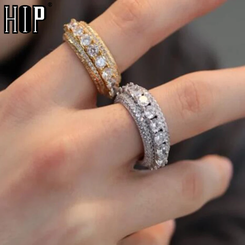 Хип-хоп вращающийся 5 ряд Iced Out Bling Полный украшения CZ Tready медь, кубический цирконий кольцо для мужчин ювелирные изделия золото серебро Разме...