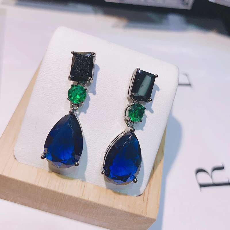 AAA кубического циркония серьги черные капли воды форма камня серьги для Для женщин Модные украшения EGY003