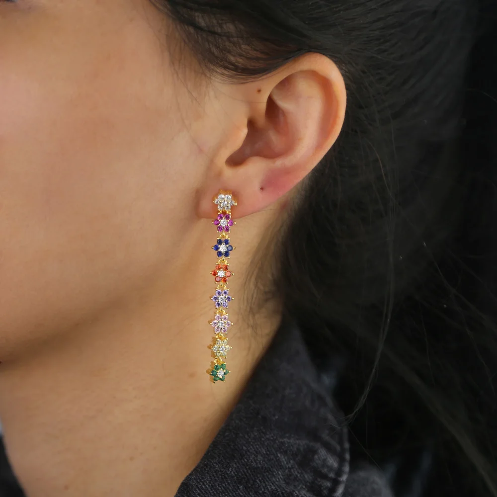 Золотая Радуга cz цветок длинные висячие серьги 2020 весна новый цветок маргаритки Очаровательные Красивые Красочные золотые ювелирные издел...