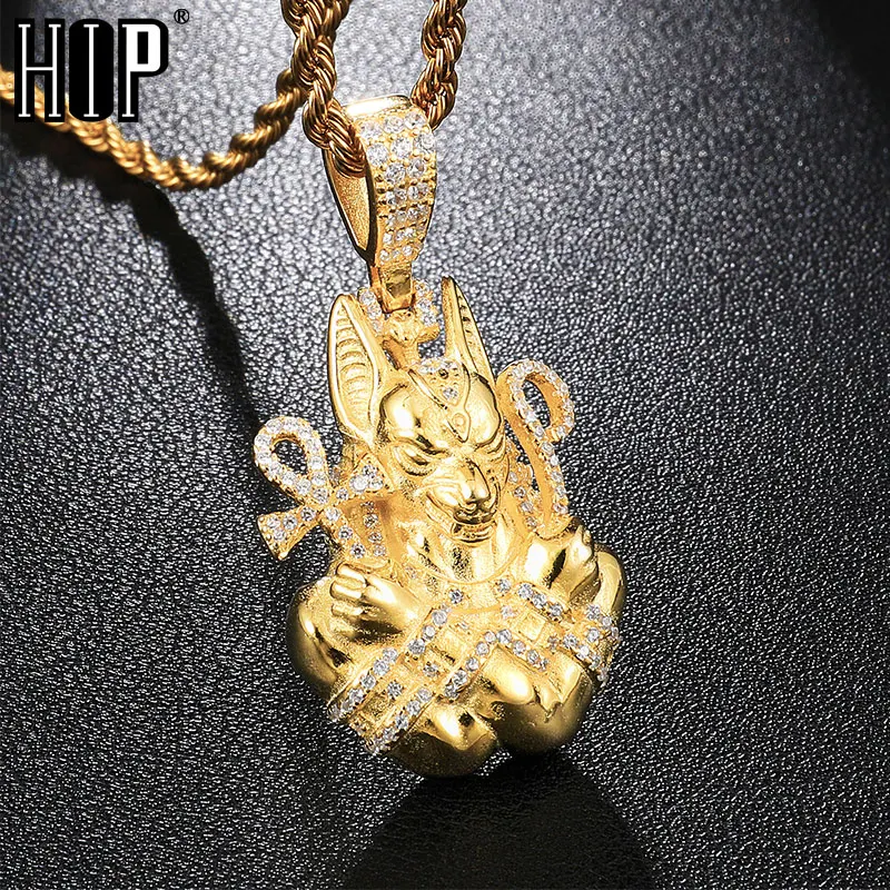 Хип хоп Полный AAA Iced Out Bling кубический циркон медь Египетский АНХ крест Anubis подвески и ожерелья для мужчин ювелирные изделия оптом