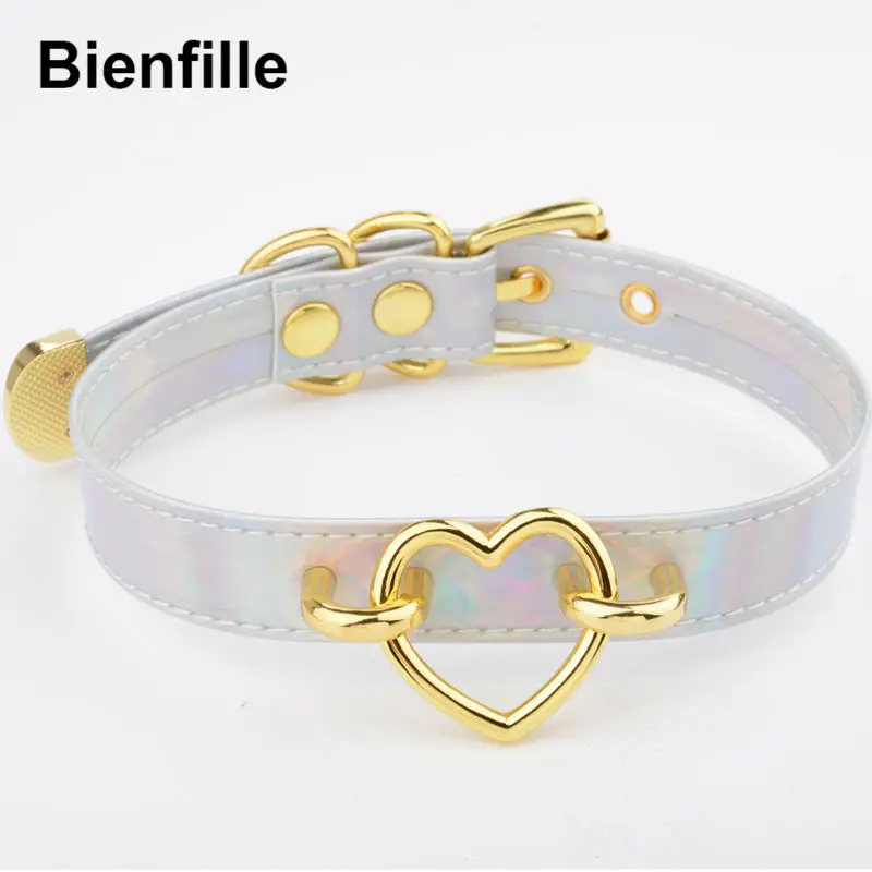 Гот лазерной из искусственной кожи Цепочки и ожерелья Harajuku стильный 90 s Kawaii готический сердце колье БДСМ halsband рабства воротник выберите Цве...