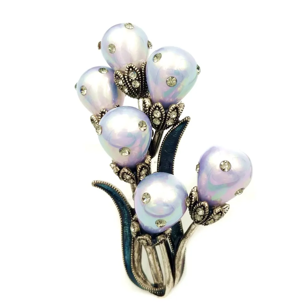 Ретро античный имитация жемчуга в форме груши Броши с дизайном «тюльпан» золотой тон эмалированный лист кристалл деко цветок бутон булавки аксессуары для свитера