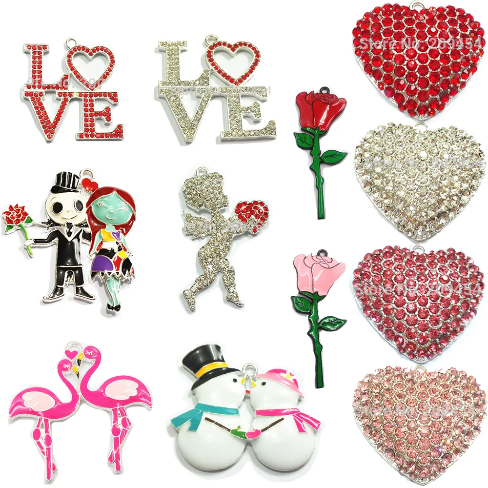 (Выберите дизайн в первую очередь) 10 шт./пакет цинковый сплав полностью покрытый эмалью Love цветочная подвеска для ко дню святого валентина для изготовления ювелирных изделий, аксессуары