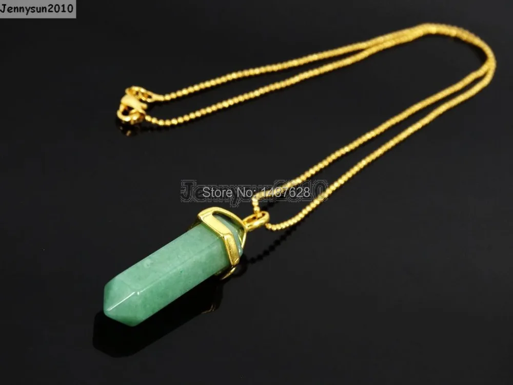 Естественный Зеленый Авантюрин камни Камни Шестиугольная Указал исцеления Рейки Чакра Кулон из бисера Золотой 17 "цепи Цепочки и ожерелья 5 ...