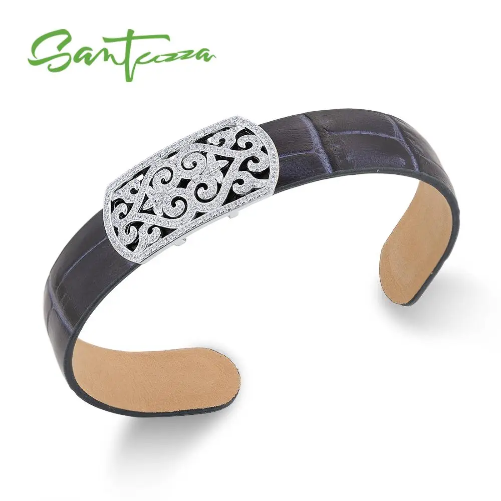 SANTUZZA Серебряный браслет браслеты для Для женщин Для мужчин 925 пробы серебряные регулируемый браслет синий из натуральной кожи Chic Модные укр...
