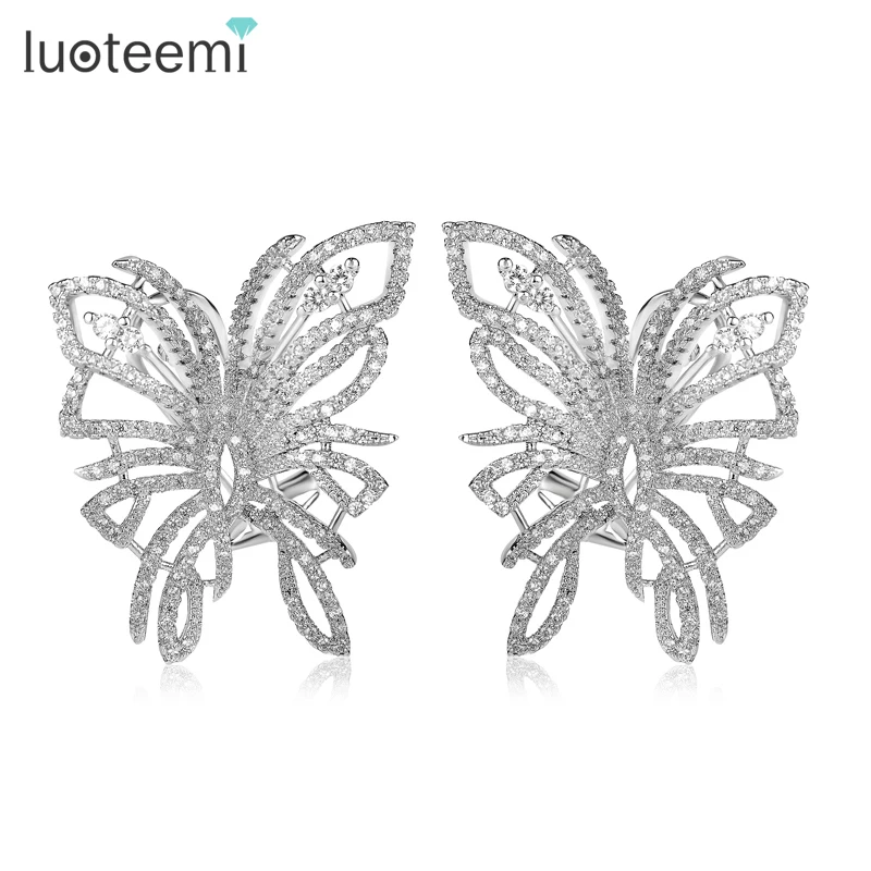 Luoteemi Классическая Модные украшения Белое золото-Цвет кубический циркон Серьги уточнение бабочка Талисманы Серьги-гвоздики для женщин