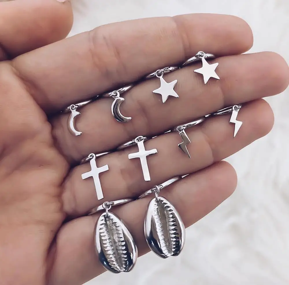 Бесконечный круг геометрические Звезды Треугольник маленькие серьги-кольца с Pandent Серебро Золото Цвет простые серьги для женщин мужчин юве...
