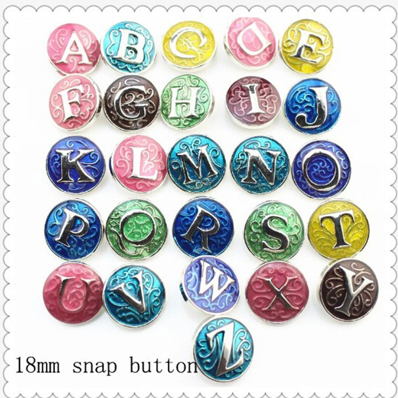 Начальные красочные эмалированные буквы Алфавит оснастки ювелирные изделия 18 мм металлическая кнопка оснастки подходит для браслета с защелкой смесь оптовая торговля