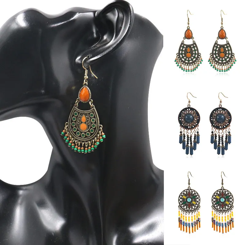 LNRRABC 2019 Новые висячие серьги с кистями из бусин 1 пара этнические вечерние длинные висячие юбилейный Свадебный 6 цветов Винтаж несколько