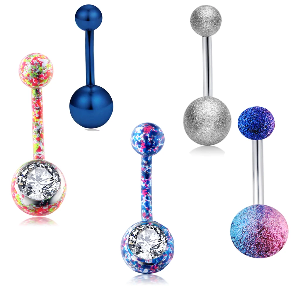 JUNLOWPY 1-6 шт 14 г кольца для пупка из нержавеющей стали для женщин девочек CZ Винт пупка Шпильки для пирсинга ювелирные изделия Nombril