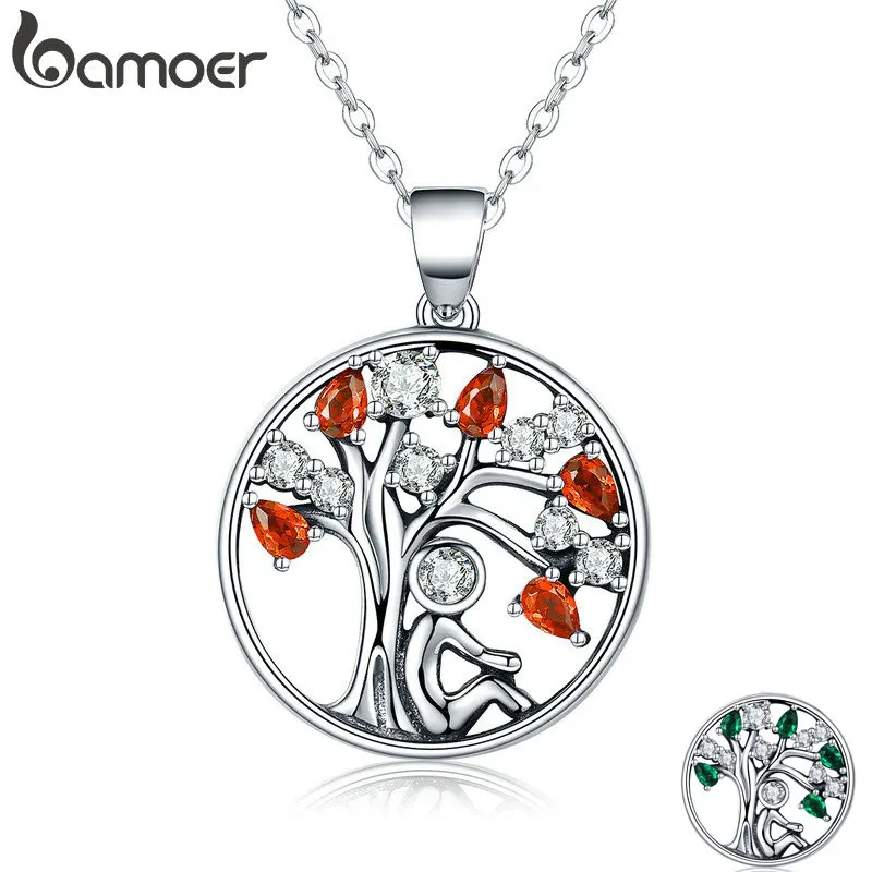 BAMOER горячая Распродажа 100% 925 пробы серебро 2 цвета Древо жизни ААА подвеска с цирконием ожерелья для женщин ювелирные изделия Brincos SCN203