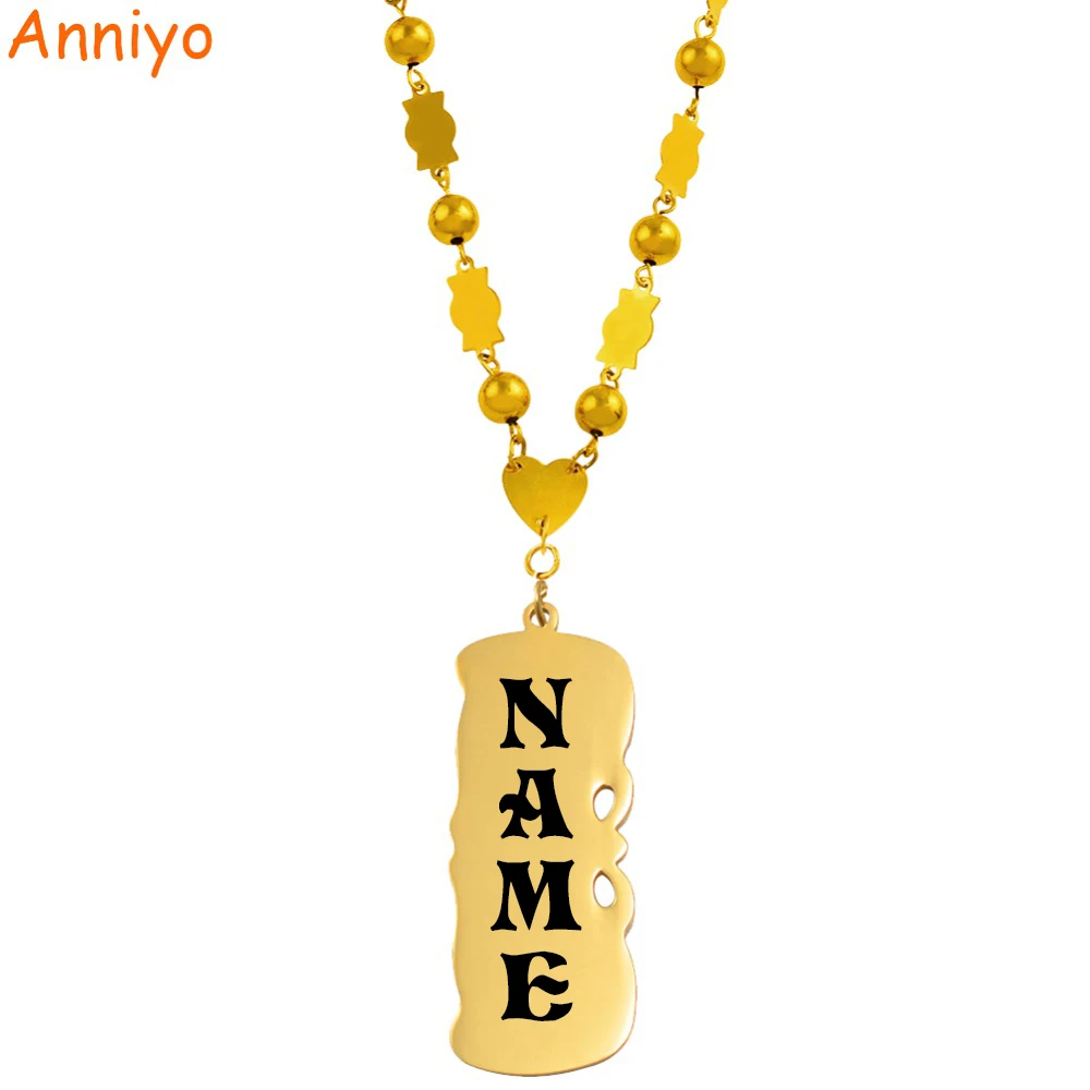 Anniyo персонализированные черный имя небольшой бусины цепь Цепочки и ожерелья Для женщин девочек Маршалл Jewelry Микронезия настроить письма им...