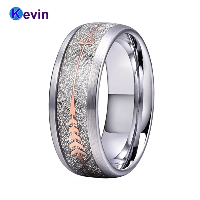 Серебряные обручальные кольца серебряное кольцо Вольфрам карбида кольцо с розовым золотом стальная стрела и белый метеорит инкрустация Но...